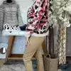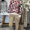 Camisola Felpuda Padrão Bege/Coral/Preto