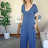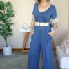 Macacão Azul Ganga Manga Bordada