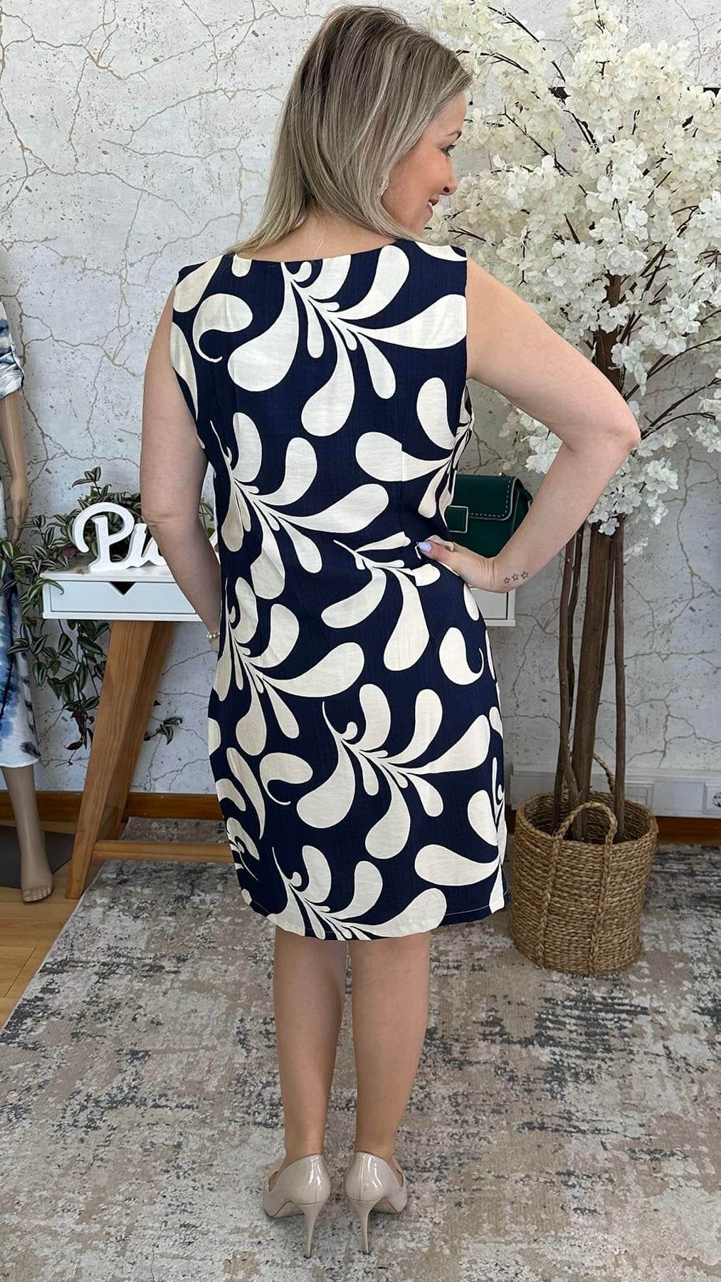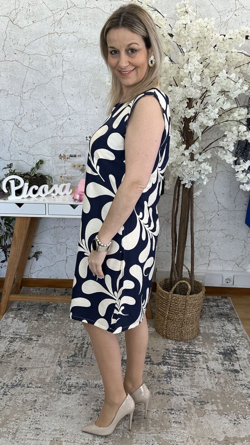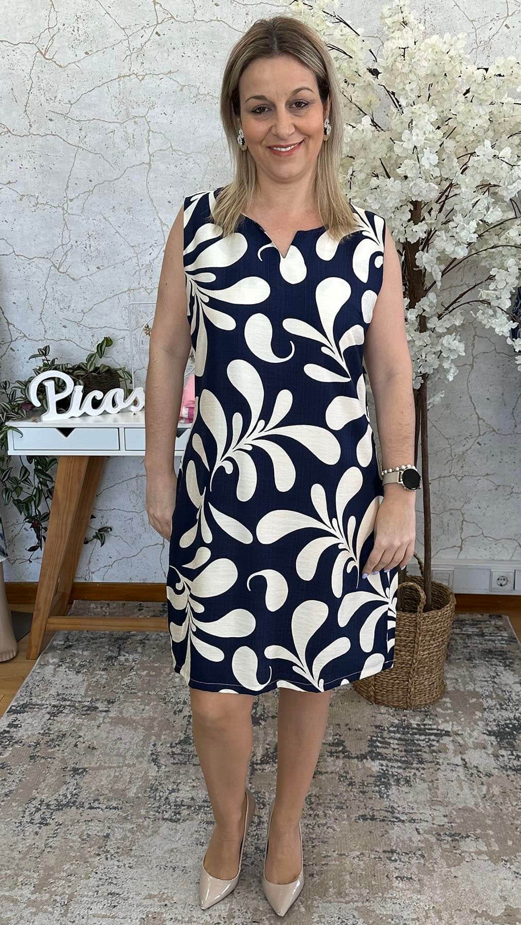 Vestido S/ Manga Azul/ Bege